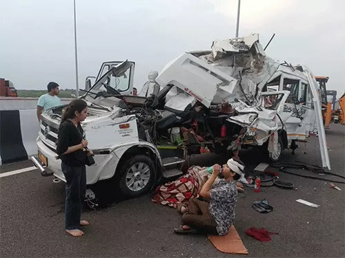 रविवार सुबह दिल्ली-मुंबई एक्सप्रेस-वे के चंबल पुल पर (बुढ़ादीत गांव) दुर्घटना हो गई। हादसा देखकर लगता है कि मिनी बस की स्पीड काफी तेज थी। आशंका जताई जा रही है कि मिनी बस के ड्राइवर को झपकी आने के कारण हादसा हुआ है।